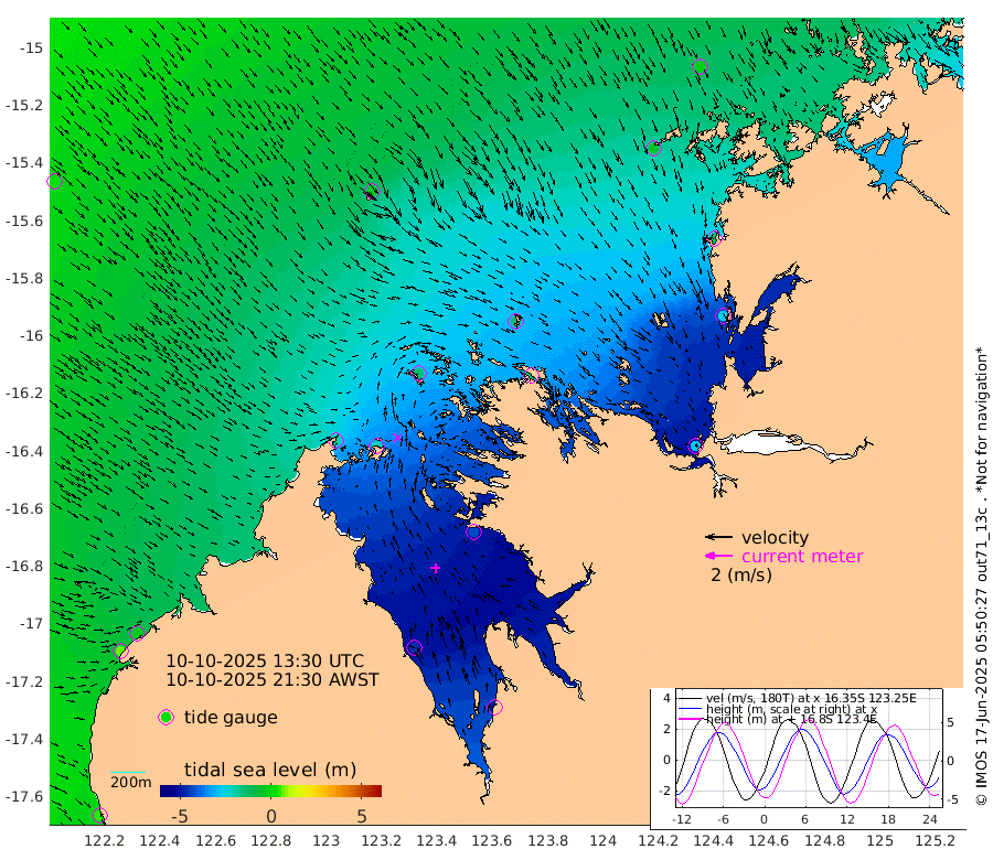 62cm Cape Baskerville -31cm Red Bluff 56cm Cape Boileau -203cm Karrakatta Bay -217cm Sunday Island -465cm Valentine Island -499cm Derby -426cm Port Usborne -138cm Bedford Islands -149cm Yampi Sound (Koolan Island) -136cm Macleay Island -19cm Adele Island -270cm Shale Island -257cm Lizard Island -133cm Hall Point -55cm Degerando Island -5cm White Island 37cm Lynher Bank