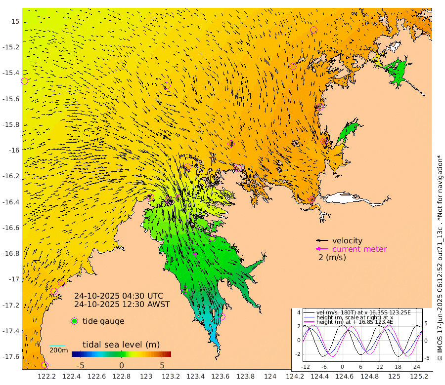 228cm Cape Baskerville 304cm Red Bluff 219cm Cape Boileau 279cm Karrakatta Bay 243cm Sunday Island 64cm Valentine Island -55cm Derby 86cm Port Usborne 314cm Bedford Islands 379cm Yampi Sound (Koolan Island) 394cm Macleay Island 259cm Adele Island 445cm Shale Island 432cm Lizard Island 389cm Hall Point 324cm Degerando Island 310cm White Island 169cm Lynher Bank