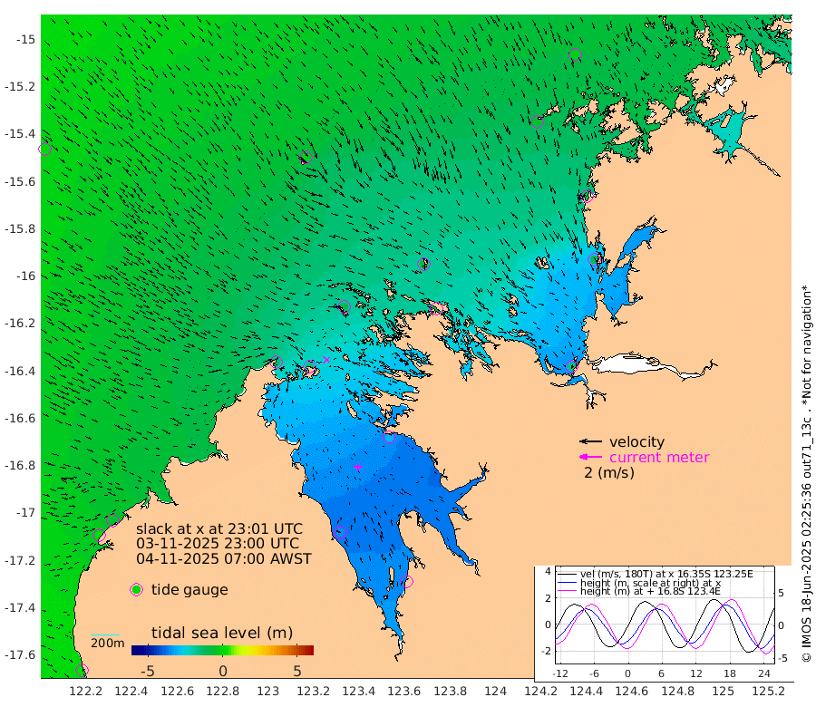 26cm Cape Baskerville -41cm Red Bluff 34cm Cape Boileau -138cm Karrakatta Bay -151cm Sunday Island -352cm Valentine Island -371cm Derby -294cm Port Usborne -94cm Bedford Islands -96cm Yampi Sound (Koolan Island) -64cm Macleay Island -18cm Adele Island -163cm Shale Island -124cm Lizard Island -123cm Hall Point -40cm Degerando Island -9cm White Island 15cm Lynher Bank