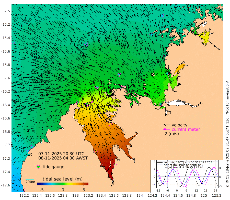 -264cm Cape Baskerville -239cm Red Bluff -252cm Cape Boileau -98cm Karrakatta Bay -64cm Sunday Island 337cm Valentine Island 450cm Derby 254cm Port Usborne -196cm Bedford Islands -231cm Yampi Sound (Koolan Island) -261cm Macleay Island -231cm Adele Island -192cm Shale Island -190cm Lizard Island -182cm Hall Point -259cm Degerando Island -279cm White Island -203cm Lynher Bank