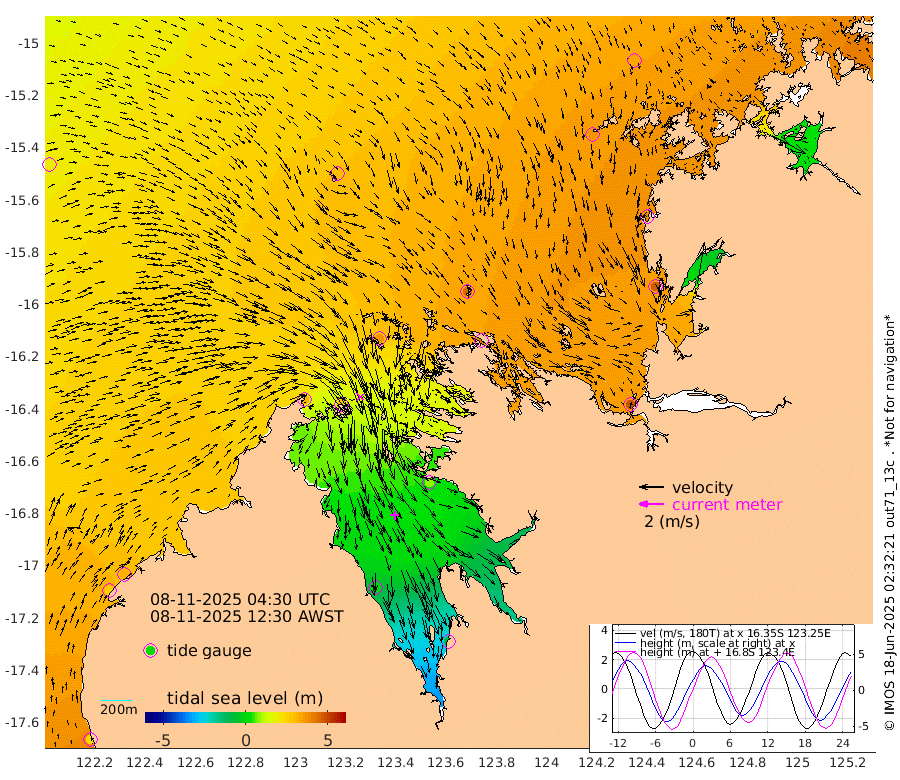 252cm Cape Baskerville 310cm Red Bluff 242cm Cape Boileau 305cm Karrakatta Bay 270cm Sunday Island 35cm Valentine Island -78cm Derby 92cm Port Usborne 363cm Bedford Islands 413cm Yampi Sound (Koolan Island) 438cm Macleay Island 286cm Adele Island 485cm Shale Island 463cm Lizard Island 382cm Hall Point 360cm Degerando Island 332cm White Island 194cm Lynher Bank