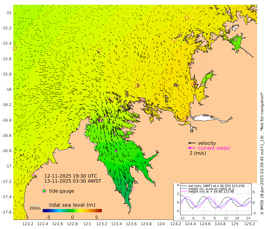 125cm Cape Baskerville 132cm Red Bluff 140cm Cape Boileau 147cm Karrakatta Bay 143cm Sunday Island 35cm Valentine Island -6cm Derby 61cm Port Usborne 154cm Bedford Islands 203cm Yampi Sound (Koolan Island) 203cm Macleay Island 139cm Adele Island 236cm Shale Island 262cm Lizard Island 258cm Hall Point 179cm Degerando Island 184cm White Island 114cm Lynher Bank