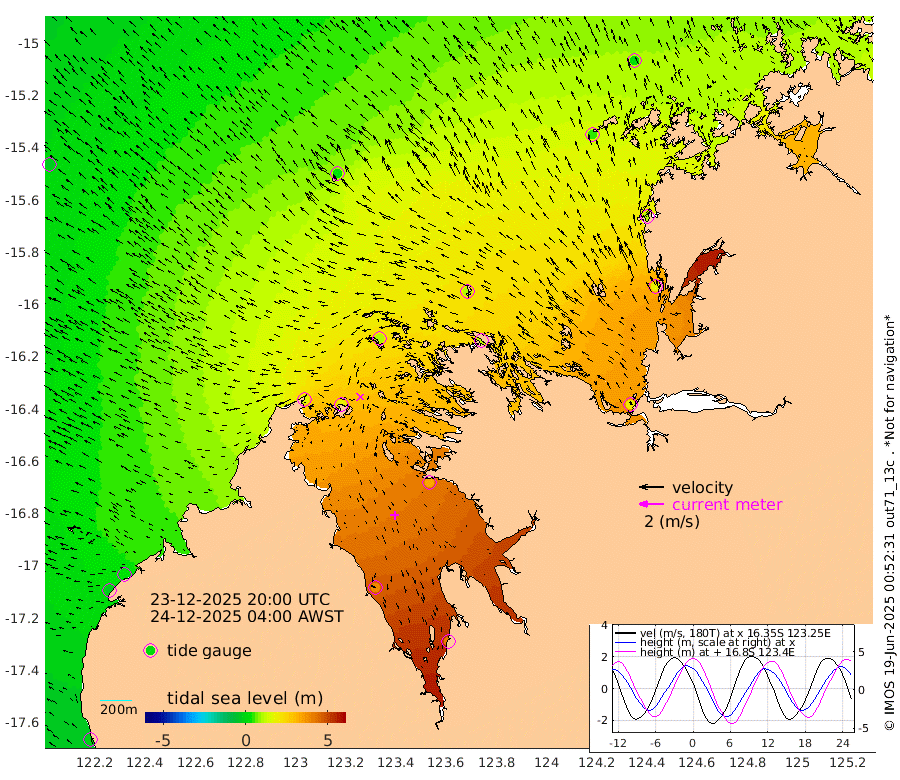 -29cm Cape Baskerville 33cm Red Bluff -16cm Cape Boileau 158cm Karrakatta Bay 172cm Sunday Island 389cm Valentine Island 398cm Derby 328cm Port Usborne 98cm Bedford Islands 117cm Yampi Sound (Koolan Island) 112cm Macleay Island 27cm Adele Island 201cm Shale Island 186cm Lizard Island 106cm Hall Point 53cm Degerando Island 25cm White Island -19cm Lynher Bank