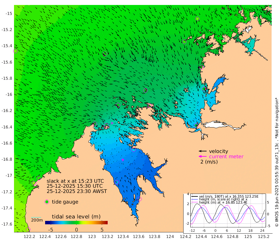 86cm Cape Baskerville 41cm Red Bluff 99cm Cape Boileau -70cm Karrakatta Bay -90cm Sunday Island -311cm Valentine Island -346cm Derby -264cm Port Usborne -23cm Bedford Islands -17cm Yampi Sound (Koolan Island) -22cm Macleay Island 36cm Adele Island -80cm Shale Island -32cm Lizard Island 26cm Hall Point 42cm Degerando Island 62cm White Island 68cm Lynher Bank