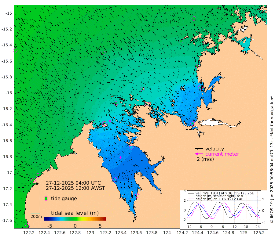 8cm Cape Baskerville -50cm Red Bluff -9cm Cape Boileau -154cm Karrakatta Bay -173cm Sunday Island -316cm Valentine Island -340cm Derby -292cm Port Usborne -107cm Bedford Islands -131cm Yampi Sound (Koolan Island) -142cm Macleay Island -62cm Adele Island -199cm Shale Island -218cm Lizard Island -54cm Hall Point -71cm Degerando Island -47cm White Island -15cm Lynher Bank
