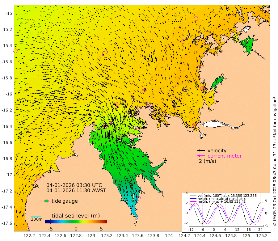 213cm Cape Baskerville 246cm Red Bluff 194cm Cape Boileau 232cm Karrakatta Bay 199cm Sunday Island 8cm Valentine Island -95cm Derby 49cm Port Usborne 290cm Bedford Islands 316cm Yampi Sound (Koolan Island) 368cm Macleay Island 240cm Adele Island 365cm Shale Island 339cm Lizard Island 366cm Hall Point 285cm Degerando Island 259cm White Island 158cm Lynher Bank