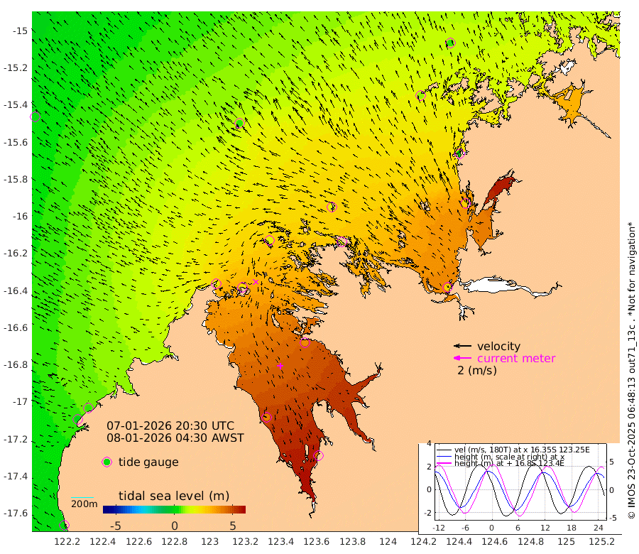 -16cm Cape Baskerville 38cm Red Bluff 2cm Cape Boileau 194cm Karrakatta Bay 221cm Sunday Island 409cm Valentine Island 438cm Derby 381cm Port Usborne 153cm Bedford Islands 161cm Yampi Sound (Koolan Island) 157cm Macleay Island 52cm Adele Island 255cm Shale Island 244cm Lizard Island 19cm Hall Point 89cm Degerando Island 41cm White Island 5cm Lynher Bank