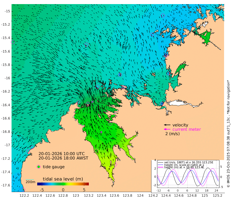 -210cm Cape Baskerville -238cm Red Bluff -202cm Cape Boileau -218cm Karrakatta Bay -161cm Sunday Island 26cm Valentine Island 130cm Derby -7cm Port Usborne -240cm Bedford Islands -293cm Yampi Sound (Koolan Island) -340cm Macleay Island -223cm Adele Island -339cm Shale Island -289cm Lizard Island -376cm Hall Point -271cm Degerando Island -257cm White Island -137cm Lynher Bank