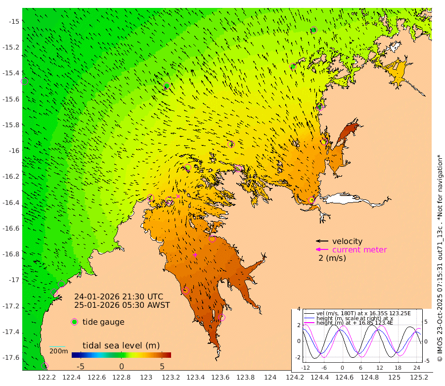 -41cm Cape Baskerville 29cm Red Bluff -32cm Cape Boileau 160cm Karrakatta Bay 177cm Sunday Island 385cm Valentine Island 412cm Derby 343cm Port Usborne 102cm Bedford Islands 118cm Yampi Sound (Koolan Island) 118cm Macleay Island 26cm Adele Island 206cm Shale Island 201cm Lizard Island 34cm Hall Point 40cm Degerando Island 9cm White Island -21cm Lynher Bank