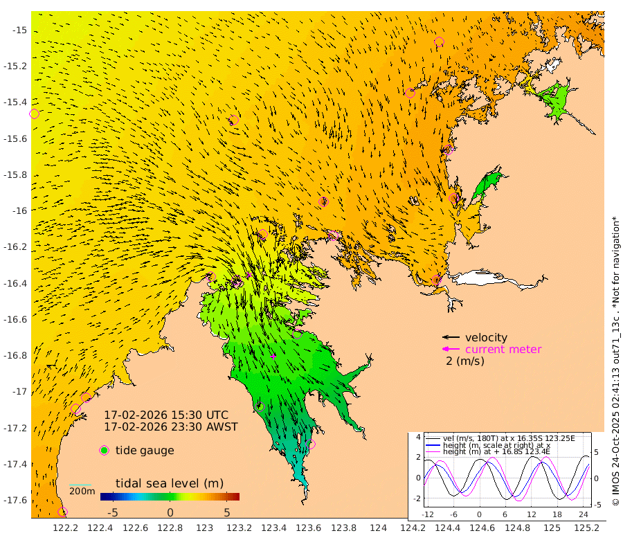 260cm Cape Baskerville 303cm Red Bluff 264cm Cape Boileau 282cm Karrakatta Bay 232cm Sunday Island 58cm Valentine Island -62cm Derby 72cm Port Usborne 304cm Bedford Islands 364cm Yampi Sound (Koolan Island) 412cm Macleay Island 287cm Adele Island 415cm Shale Island 398cm Lizard Island 396cm Hall Point 337cm Degerando Island 318cm White Island 190cm Lynher Bank