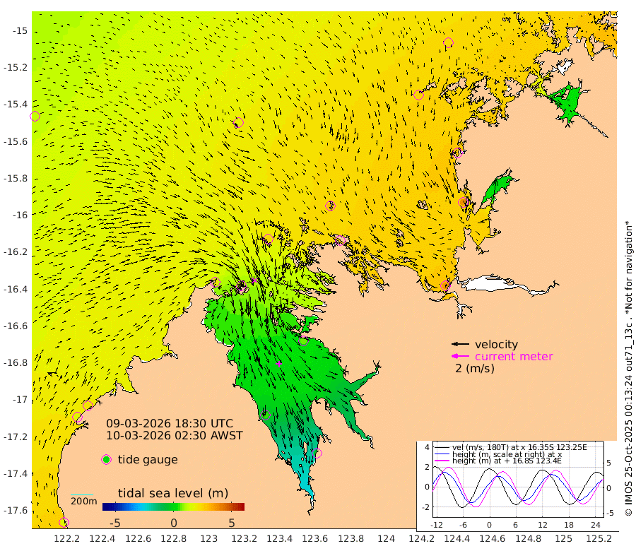 161cm Cape Baskerville 225cm Red Bluff 158cm Cape Boileau 213cm Karrakatta Bay 181cm Sunday Island 45cm Valentine Island -46cm Derby 67cm Port Usborne 230cm Bedford Islands 295cm Yampi Sound (Koolan Island) 285cm Macleay Island 182cm Adele Island 358cm Shale Island 363cm Lizard Island 270cm Hall Point 245cm Degerando Island 241cm White Island 122cm Lynher Bank