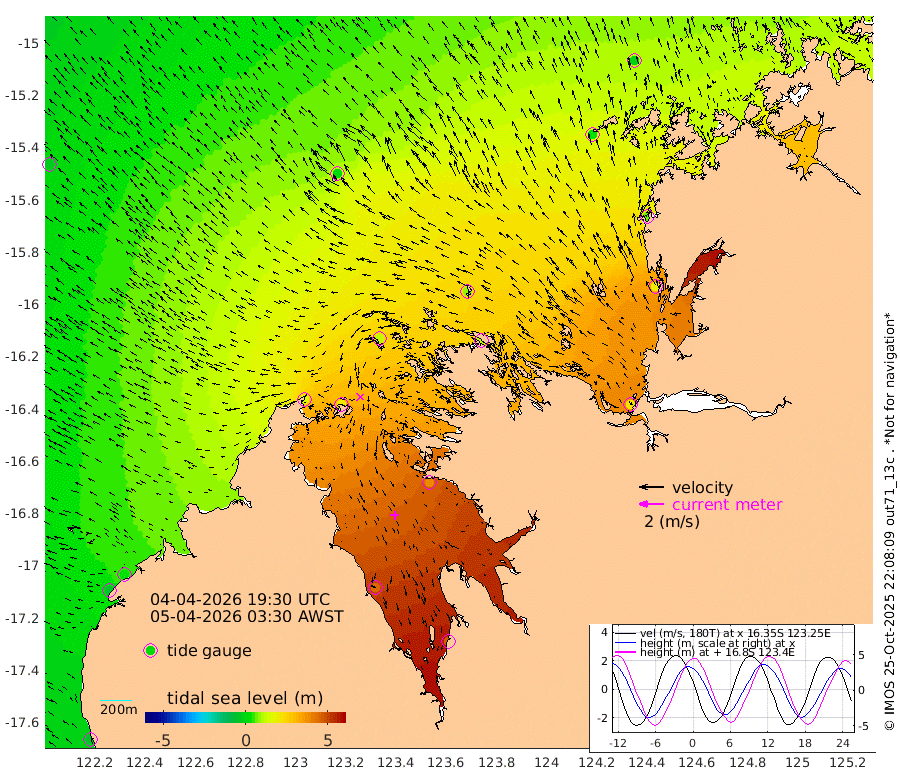 -54cm Cape Baskerville 20cm Red Bluff -53cm Cape Boileau 168cm Karrakatta Bay 203cm Sunday Island 436cm Valentine Island 467cm Derby 385cm Port Usborne 126cm Bedford Islands 115cm Yampi Sound (Koolan Island) 89cm Macleay Island 8cm Adele Island 210cm Shale Island 198cm Lizard Island 63cm Hall Point 34cm Degerando Island -6cm White Island -22cm Lynher Bank