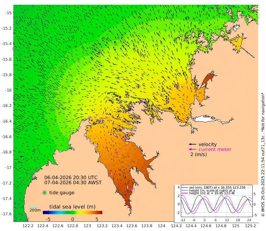 -77cm Cape Baskerville -22cm Red Bluff -81cm Cape Boileau 99cm Karrakatta Bay 135cm Sunday Island 364cm Valentine Island 396cm Derby 312cm Port Usborne 59cm Bedford Islands 49cm Yampi Sound (Koolan Island) 39cm Macleay Island -22cm Adele Island 121cm Shale Island 129cm Lizard Island 57cm Hall Point -19cm Degerando Island -41cm White Island -39cm Lynher Bank