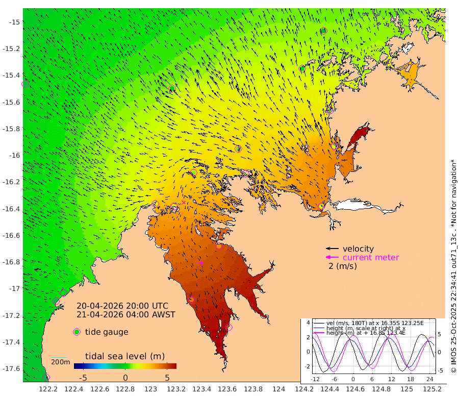 -82cm Cape Baskerville 1cm Red Bluff -83cm Cape Boileau 153cm Karrakatta Bay 182cm Sunday Island 425cm Valentine Island 485cm Derby 390cm Port Usborne 87cm Bedford Islands 82cm Yampi Sound (Koolan Island) 67cm Macleay Island -7cm Adele Island 183cm Shale Island 159cm Lizard Island 86cm Hall Point 1cm Degerando Island -41cm White Island -44cm Lynher Bank