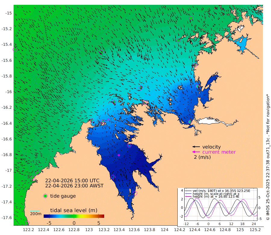 17cm Cape Baskerville -23cm Red Bluff 9cm Cape Boileau -176cm Karrakatta Bay -206cm Sunday Island -415cm Valentine Island -461cm Derby -382cm Port Usborne -123cm Bedford Islands -126cm Yampi Sound (Koolan Island) -132cm Macleay Island -56cm Adele Island -209cm Shale Island -216cm Lizard Island -119cm Hall Point -62cm Degerando Island -25cm White Island -20cm Lynher Bank