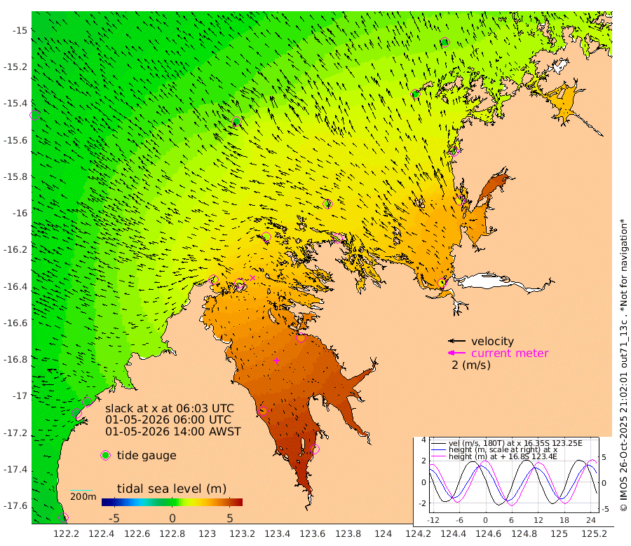 -63cm Cape Baskerville -7cm Red Bluff -47cm Cape Boileau 136cm Karrakatta Bay 165cm Sunday Island 397cm Valentine Island 443cm Derby 359cm Port Usborne 98cm Bedford Islands 95cm Yampi Sound (Koolan Island) 61cm Macleay Island -3cm Adele Island 176cm Shale Island 195cm Lizard Island 65cm Hall Point 36cm Degerando Island -13cm White Island -24cm Lynher Bank