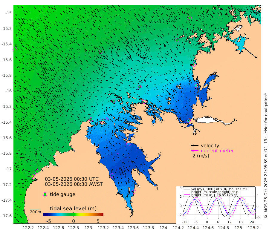 57cm Cape Baskerville -18cm Red Bluff 46cm Cape Boileau -147cm Karrakatta Bay -172cm Sunday Island -378cm Valentine Island -400cm Derby -340cm Port Usborne -115cm Bedford Islands -115cm Yampi Sound (Koolan Island) -96cm Macleay Island -5cm Adele Island -207cm Shale Island -220cm Lizard Island -109cm Hall Point -44cm Degerando Island 0cm White Island 30cm Lynher Bank