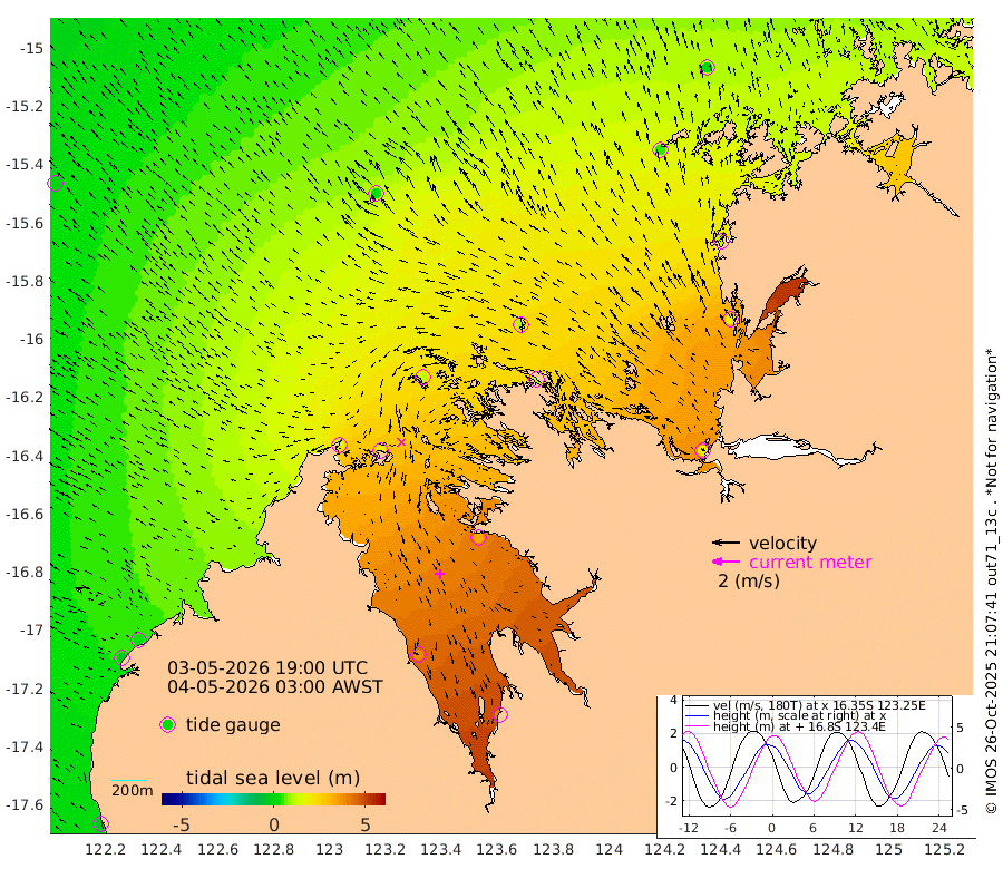 -33cm Cape Baskerville 37cm Red Bluff -39cm Cape Boileau 157cm Karrakatta Bay 187cm Sunday Island 384cm Valentine Island 400cm Derby 337cm Port Usborne 128cm Bedford Islands 117cm Yampi Sound (Koolan Island) 97cm Macleay Island 22cm Adele Island 203cm Shale Island 194cm Lizard Island 118cm Hall Point 46cm Degerando Island 9cm White Island -8cm Lynher Bank