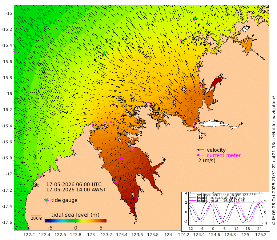 -36cm Cape Baskerville 43cm Red Bluff -25cm Cape Boileau 200cm Karrakatta Bay 209cm Sunday Island 468cm Valentine Island 494cm Derby 408cm Port Usborne 130cm Bedford Islands 148cm Yampi Sound (Koolan Island) 128cm Macleay Island 34cm Adele Island 251cm Shale Island 236cm Lizard Island 200cm Hall Point 72cm Degerando Island 25cm White Island -19cm Lynher Bank