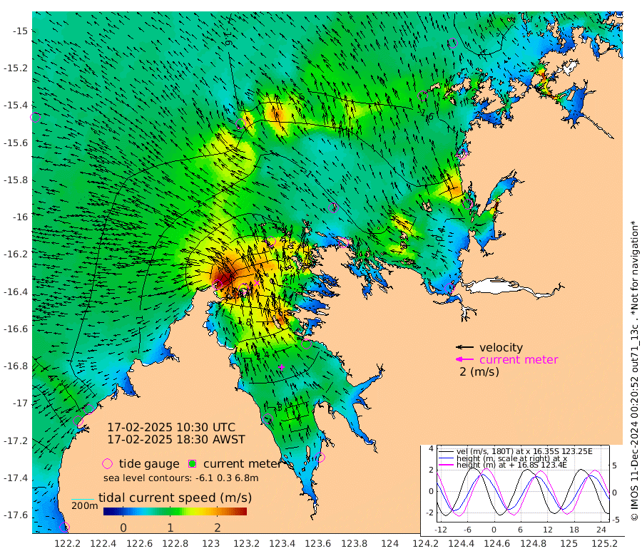 -231cm Cape Baskerville -241cm Red Bluff -220cm Cape Boileau -130cm Karrakatta Bay -72cm Sunday Island 238cm Valentine Island 357cm Derby 188cm Port Usborne -179cm Bedford Islands -229cm Yampi Sound (Koolan Island) -248cm Macleay Island -200cm Adele Island -228cm Shale Island -186cm Lizard Island -275cm Hall Point -242cm Degerando Island -253cm White Island -150cm Lynher Bank
