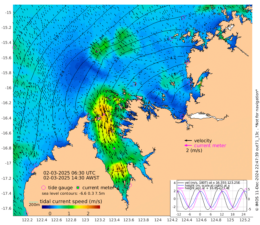 126cm Cape Baskerville 224cm Red Bluff 120cm Cape Boileau 362cm Karrakatta Bay 358cm Sunday Island 451cm Valentine Island 410cm Derby 434cm Port Usborne 343cm Bedford Islands 387cm Yampi Sound (Koolan Island) 380cm Macleay Island 213cm Adele Island 519cm Shale Island 488cm Lizard Island 311cm Hall Point 286cm Degerando Island 228cm White Island 114cm Lynher Bank