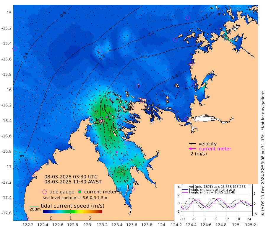 -22cm Cape Baskerville -23cm Red Bluff -26cm Cape Boileau -105cm Karrakatta Bay -105cm Sunday Island -162cm Valentine Island -146cm Derby -161cm Port Usborne -99cm Bedford Islands -123cm Yampi Sound (Koolan Island) -143cm Macleay Island -59cm Adele Island -172cm Shale Island -205cm Lizard Island -85cm Hall Point -79cm Degerando Island -75cm White Island -34cm Lynher Bank