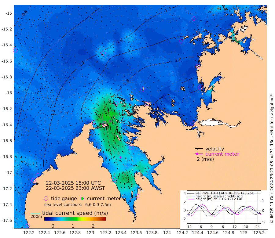 -45cm Cape Baskerville -76cm Red Bluff -39cm Cape Boileau -141cm Karrakatta Bay -139cm Sunday Island -203cm Valentine Island -191cm Derby -188cm Port Usborne -113cm Bedford Islands -143cm Yampi Sound (Koolan Island) -144cm Macleay Island -83cm Adele Island -198cm Shale Island -215cm Lizard Island -180cm Hall Point -92cm Degerando Island -88cm White Island -54cm Lynher Bank