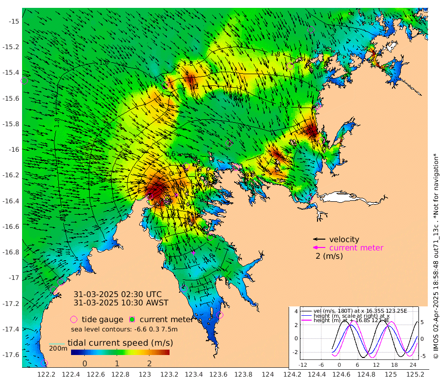 292cm Cape Baskerville 236cm Red Bluff 277cm Cape Boileau 113cm Karrakatta Bay 61cm Sunday Island -310cm Valentine Island -448cm Derby -241cm Port Usborne 215cm Bedford Islands 255cm Yampi Sound (Koolan Island) 307cm Macleay Island 258cm Adele Island 218cm Shale Island 217cm Lizard Island 226cm Hall Point 292cm Degerando Island 307cm White Island 218cm Lynher Bank