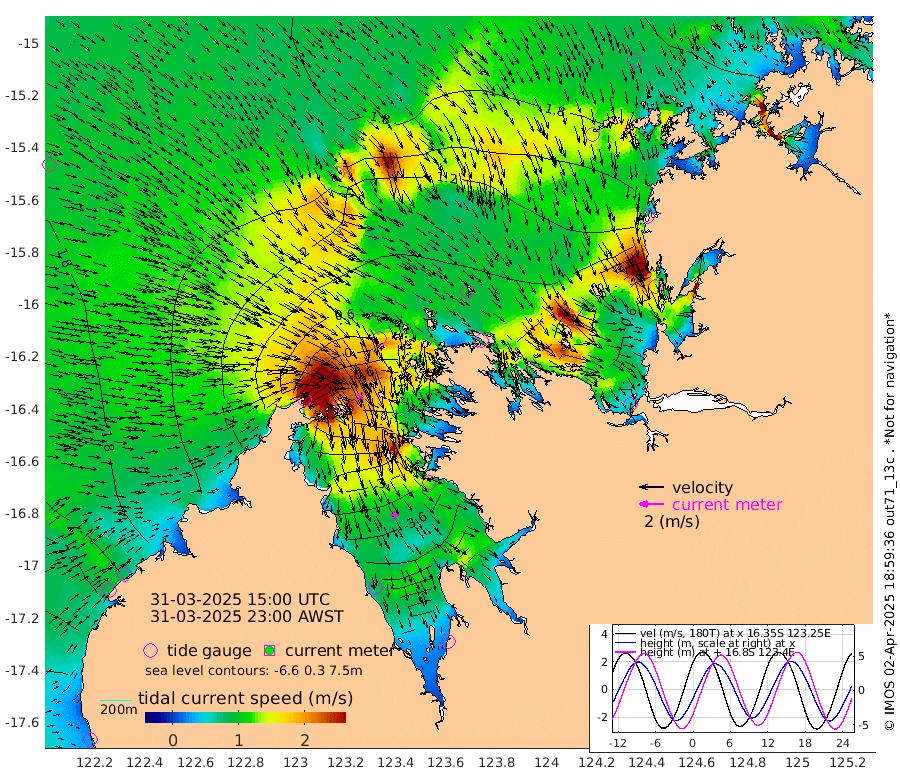 272cm Cape Baskerville 261cm Red Bluff 273cm Cape Boileau 123cm Karrakatta Bay 76cm Sunday Island -344cm Valentine Island -474cm Derby -254cm Port Usborne 219cm Bedford Islands 263cm Yampi Sound (Koolan Island) 306cm Macleay Island 245cm Adele Island 240cm Shale Island 242cm Lizard Island 214cm Hall Point 290cm Degerando Island 299cm White Island 197cm Lynher Bank