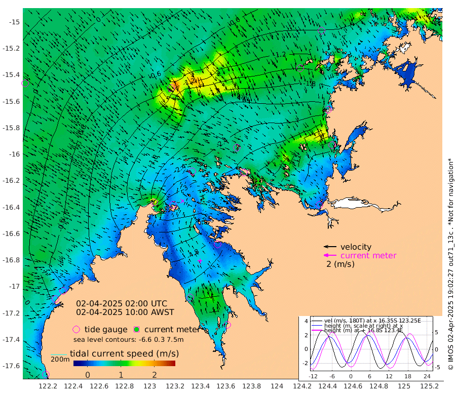86cm Cape Baskerville 1cm Red Bluff 79cm Cape Boileau -177cm Karrakatta Bay -197cm Sunday Island -471cm Valentine Island -515cm Derby -427cm Port Usborne -110cm Bedford Islands -113cm Yampi Sound (Koolan Island) -100cm Macleay Island 6cm Adele Island -228cm Shale Island -223cm Lizard Island -78cm Hall Point -22cm Degerando Island 26cm White Island 52cm Lynher Bank