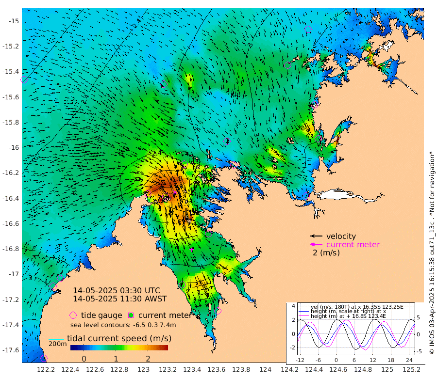 274cm Cape Baskerville 306cm Red Bluff 273cm Cape Boileau 287cm Karrakatta Bay 246cm Sunday Island 35cm Valentine Island -72cm Derby 64cm Port Usborne 315cm Bedford Islands 388cm Yampi Sound (Koolan Island) 413cm Macleay Island 297cm Adele Island 429cm Shale Island 407cm Lizard Island 417cm Hall Point 354cm Degerando Island 349cm White Island 212cm Lynher Bank