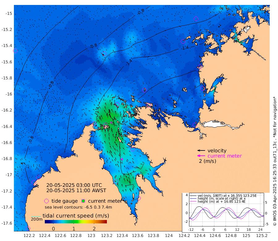 -30cm Cape Baskerville -47cm Red Bluff -18cm Cape Boileau -121cm Karrakatta Bay -101cm Sunday Island -157cm Valentine Island -135cm Derby -153cm Port Usborne -98cm Bedford Islands -117cm Yampi Sound (Koolan Island) -148cm Macleay Island -62cm Adele Island -180cm Shale Island -146cm Lizard Island -123cm Hall Point -75cm Degerando Island -61cm White Island -17cm Lynher Bank