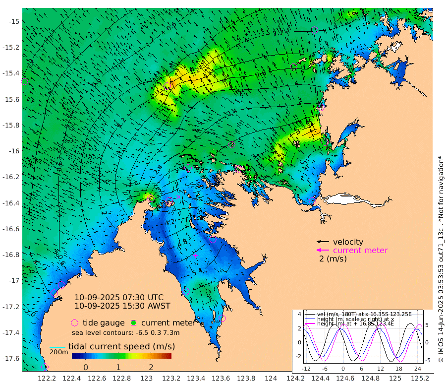 -56cm Cape Baskerville 46cm Red Bluff -48cm Cape Boileau 207cm Karrakatta Bay 232cm Sunday Island 502cm Valentine Island 541cm Derby 445cm Port Usborne 134cm Bedford Islands 150cm Yampi Sound (Koolan Island) 117cm Macleay Island 21cm Adele Island 264cm Shale Island 244cm Lizard Island 84cm Hall Point 54cm Degerando Island 8cm White Island -28cm Lynher Bank
