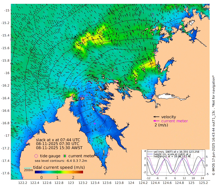 -75cm Cape Baskerville 7cm Red Bluff -79cm Cape Boileau 153cm Karrakatta Bay 180cm Sunday Island 414cm Valentine Island 470cm Derby 379cm Port Usborne 93cm Bedford Islands 82cm Yampi Sound (Koolan Island) 64cm Macleay Island -5cm Adele Island 180cm Shale Island 149cm Lizard Island 88cm Hall Point 6cm Degerando Island -41cm White Island -41cm Lynher Bank