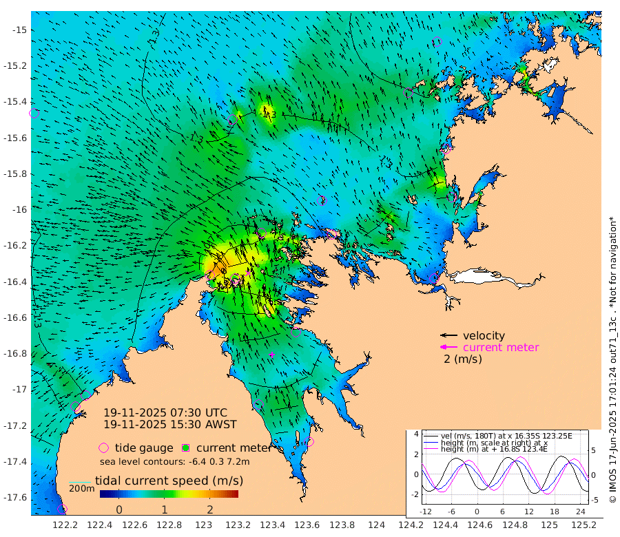 -172cm Cape Baskerville -176cm Red Bluff -179cm Cape Boileau -116cm Karrakatta Bay -88cm Sunday Island 108cm Valentine Island 193cm Derby 75cm Port Usborne -156cm Bedford Islands -210cm Yampi Sound (Koolan Island) -258cm Macleay Island -183cm Adele Island -207cm Shale Island -231cm Lizard Island -215cm Hall Point -207cm Degerando Island -219cm White Island -128cm Lynher Bank