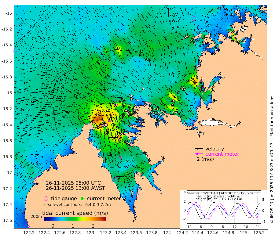 130cm Cape Baskerville 130cm Red Bluff 114cm Cape Boileau 77cm Karrakatta Bay 34cm Sunday Island -194cm Valentine Island -253cm Derby -125cm Port Usborne 120cm Bedford Islands 149cm Yampi Sound (Koolan Island) 151cm Macleay Island 112cm Adele Island 159cm Shale Island 128cm Lizard Island 191cm Hall Point 151cm Degerando Island 151cm White Island 88cm Lynher Bank