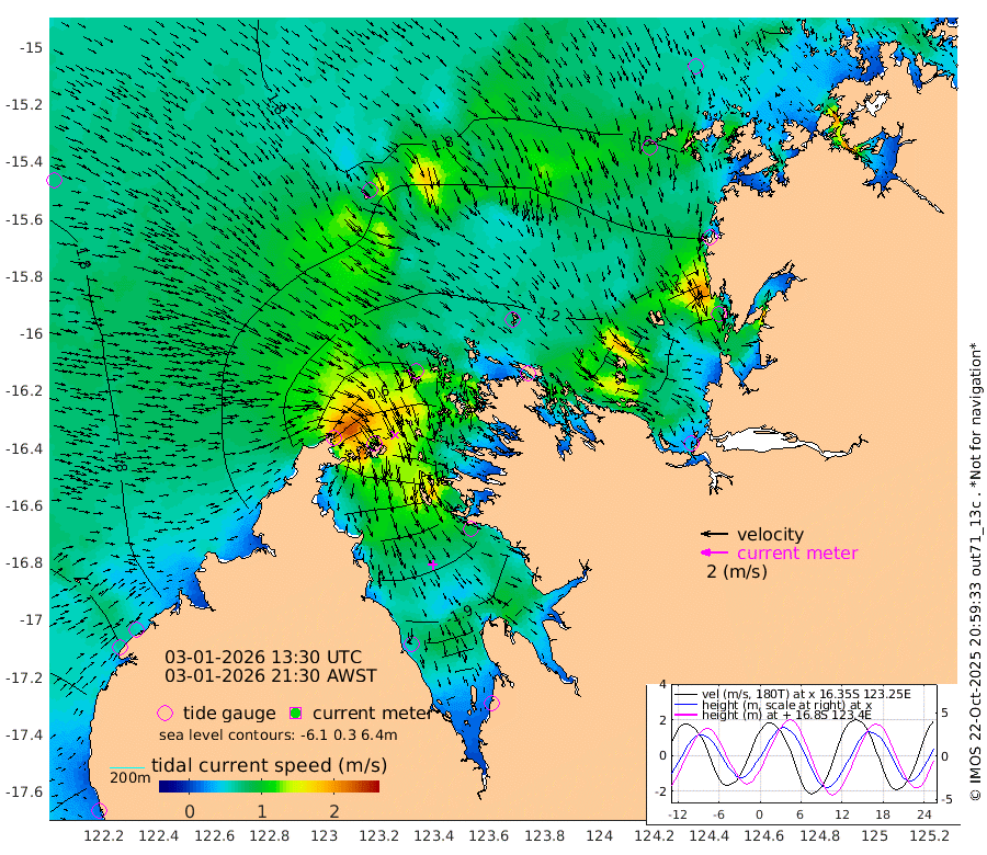 222cm Cape Baskerville 179cm Red Bluff 229cm Cape Boileau 122cm Karrakatta Bay 100cm Sunday Island -145cm Valentine Island -224cm Derby -97cm Port Usborne 178cm Bedford Islands 220cm Yampi Sound (Koolan Island) 264cm Macleay Island 217cm Adele Island 197cm Shale Island 228cm Lizard Island 225cm Hall Point 234cm Degerando Island 252cm White Island 188cm Lynher Bank