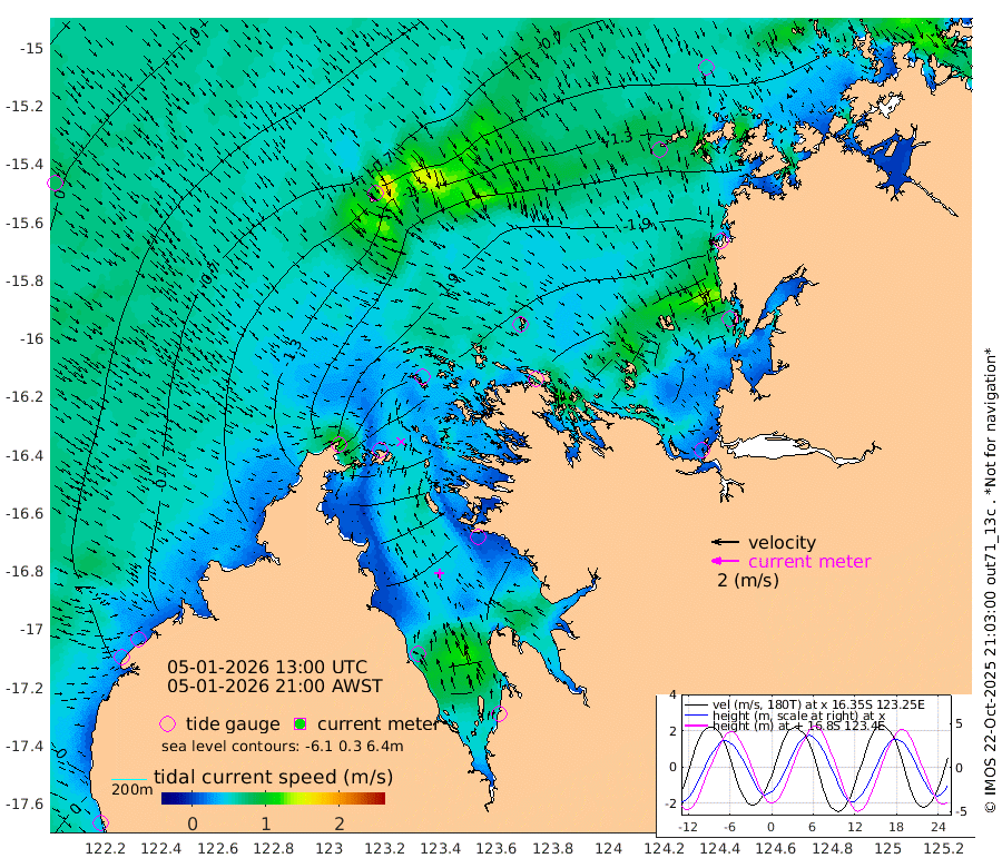 32cm Cape Baskerville -35cm Red Bluff 37cm Cape Boileau -170cm Karrakatta Bay -175cm Sunday Island -372cm Valentine Island -379cm Derby -340cm Port Usborne -140cm Bedford Islands -138cm Yampi Sound (Koolan Island) -135cm Macleay Island -30cm Adele Island -240cm Shale Island -208cm Lizard Island -72cm Hall Point -69cm Degerando Island -13cm White Island 25cm Lynher Bank