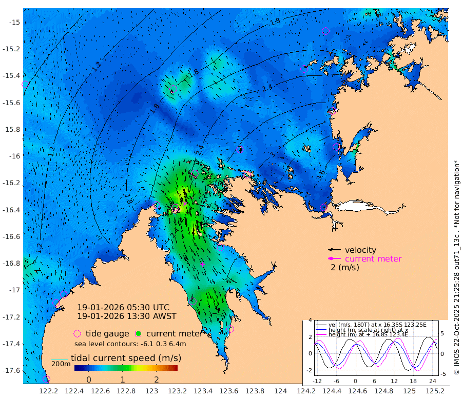 95cm Cape Baskerville 174cm Red Bluff 87cm Cape Boileau 217cm Karrakatta Bay 224cm Sunday Island 231cm Valentine Island 199cm Derby 228cm Port Usborne 222cm Bedford Islands 248cm Yampi Sound (Koolan Island) 252cm Macleay Island 152cm Adele Island 324cm Shale Island 298cm Lizard Island 289cm Hall Point 192cm Degerando Island 157cm White Island 83cm Lynher Bank