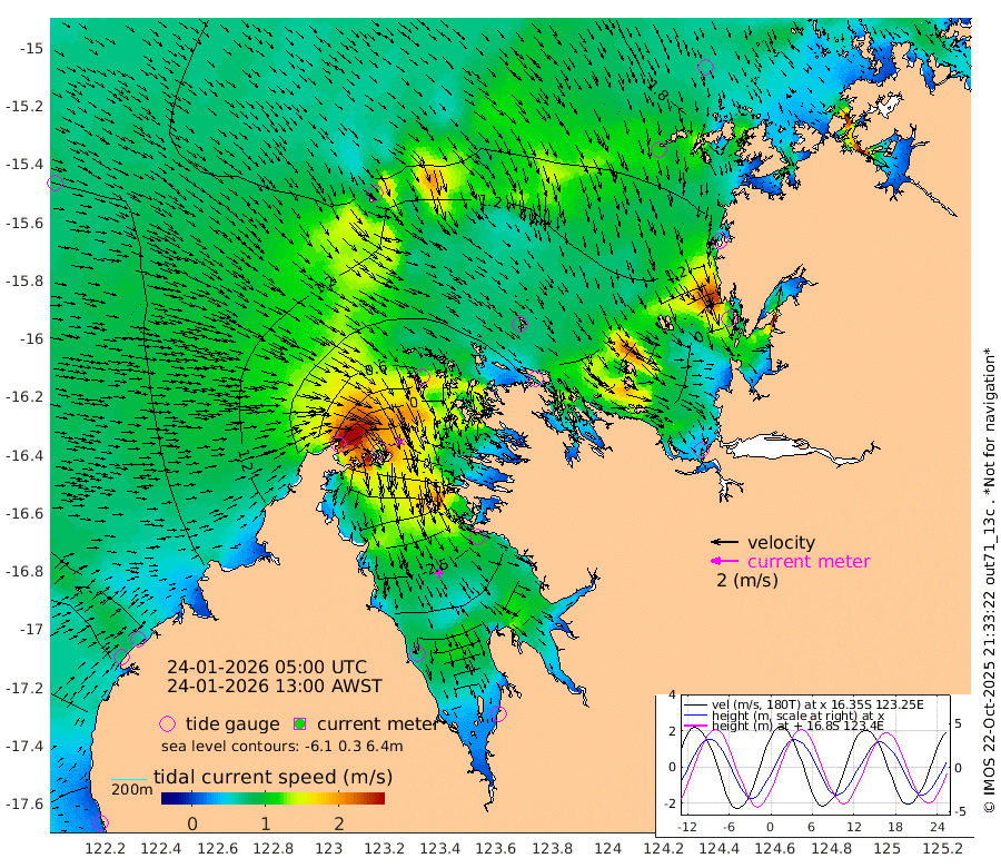 236cm Cape Baskerville 208cm Red Bluff 215cm Cape Boileau 124cm Karrakatta Bay 72cm Sunday Island -232cm Valentine Island -347cm Derby -167cm Port Usborne 203cm Bedford Islands 236cm Yampi Sound (Koolan Island) 255cm Macleay Island 206cm Adele Island 234cm Shale Island 208cm Lizard Island 246cm Hall Point 255cm Degerando Island 256cm White Island 172cm Lynher Bank