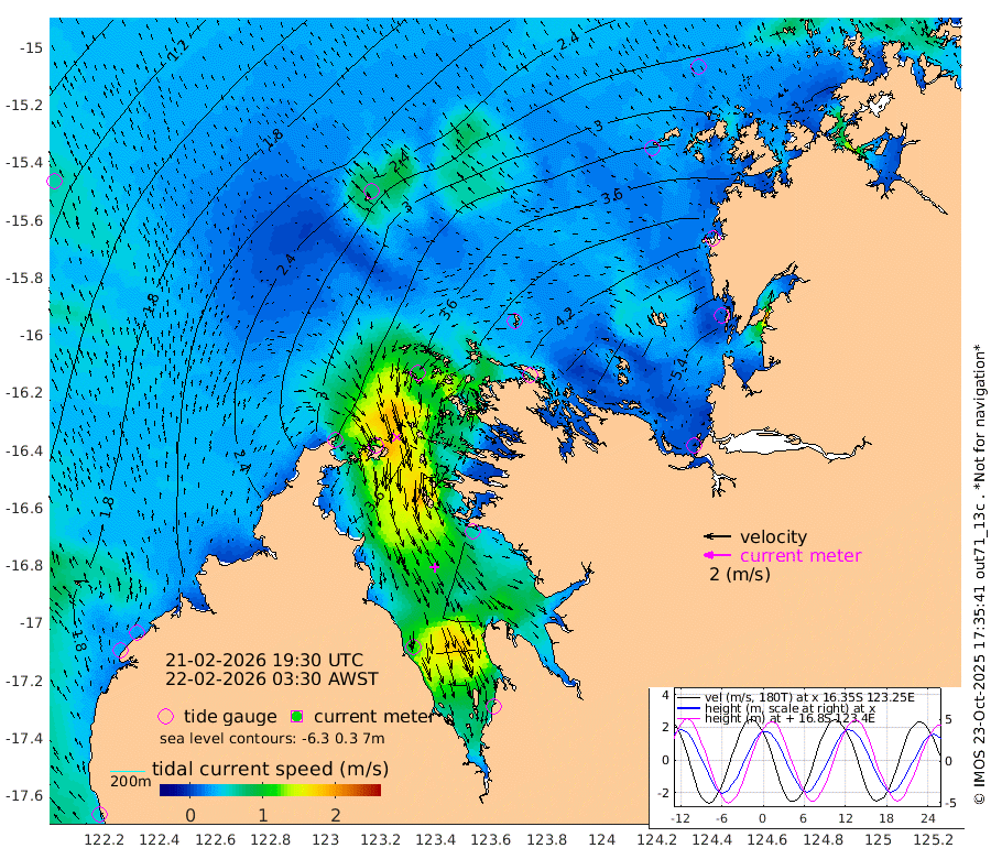 102cm Cape Baskerville 201cm Red Bluff 110cm Cape Boileau 325cm Karrakatta Bay 323cm Sunday Island 395cm Valentine Island 365cm Derby 388cm Port Usborne 294cm Bedford Islands 345cm Yampi Sound (Koolan Island) 338cm Macleay Island 181cm Adele Island 471cm Shale Island 461cm Lizard Island 239cm Hall Point 246cm Degerando Island 199cm White Island 94cm Lynher Bank