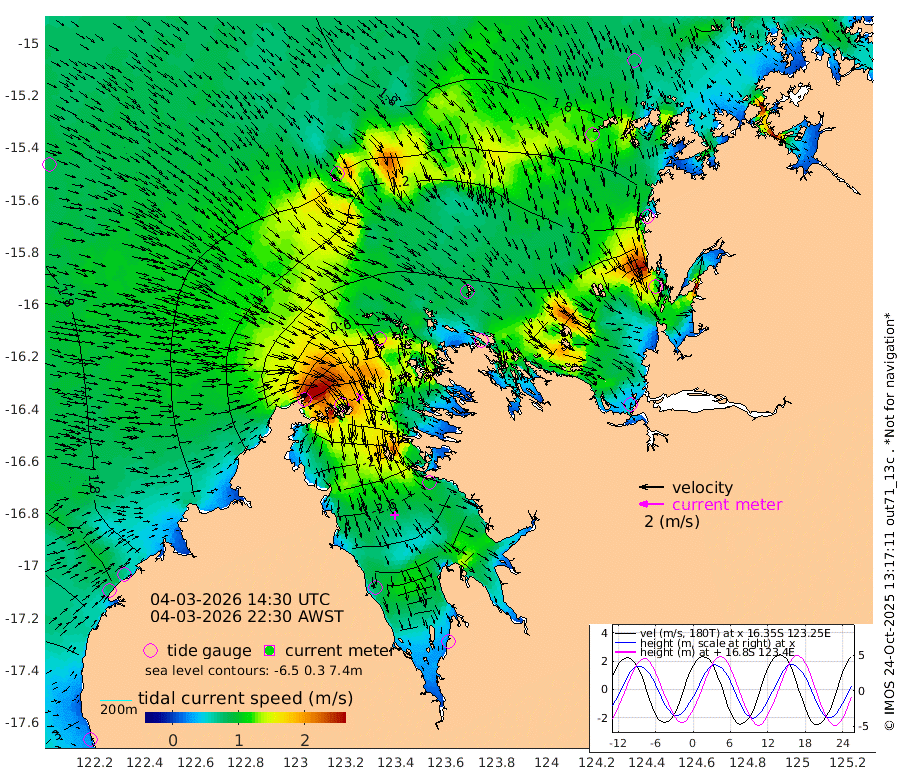 257cm Cape Baskerville 242cm Red Bluff 260cm Cape Boileau 119cm Karrakatta Bay 78cm Sunday Island -268cm Valentine Island -391cm Derby -212cm Port Usborne 188cm Bedford Islands 233cm Yampi Sound (Koolan Island) 289cm Macleay Island 235cm Adele Island 206cm Shale Island 208cm Lizard Island 284cm Hall Point 260cm Degerando Island 279cm White Island 186cm Lynher Bank