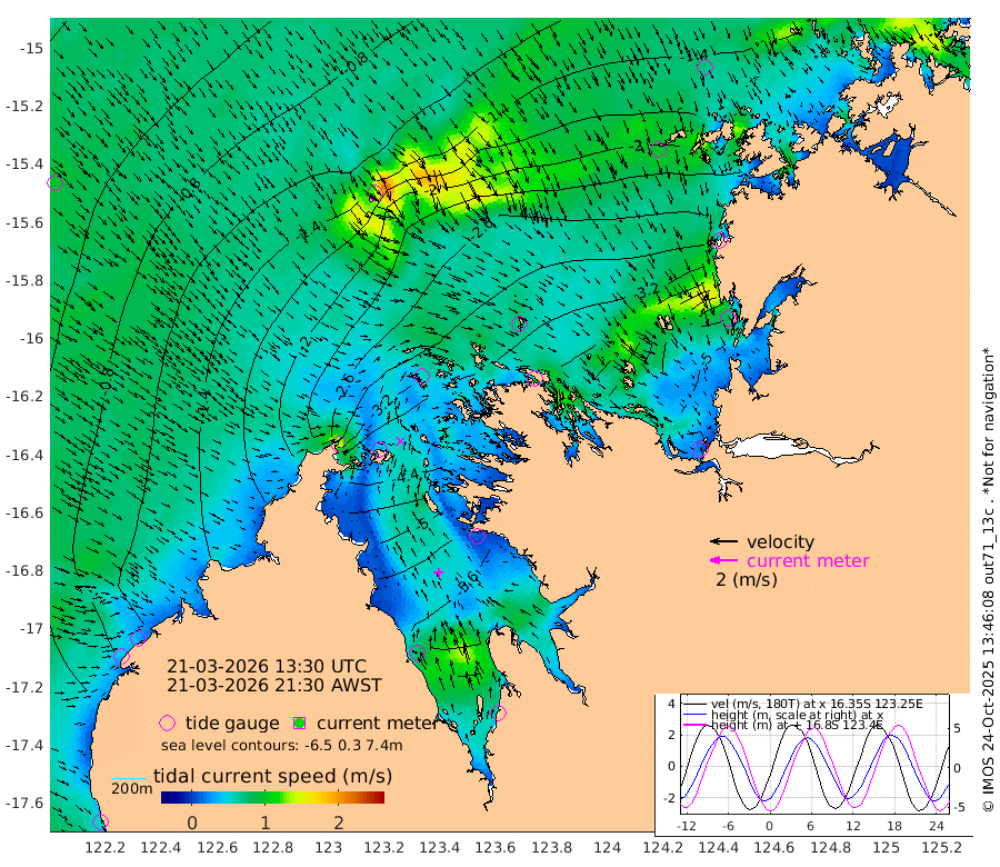 27cm Cape Baskerville -57cm Red Bluff 32cm Cape Boileau -233cm Karrakatta Bay -254cm Sunday Island -541cm Valentine Island -568cm Derby -474cm Port Usborne -165cm Bedford Islands -182cm Yampi Sound (Koolan Island) -155cm Macleay Island -52cm Adele Island -299cm Shale Island -271cm Lizard Island -158cm Hall Point -84cm Degerando Island -40cm White Island 2cm Lynher Bank
