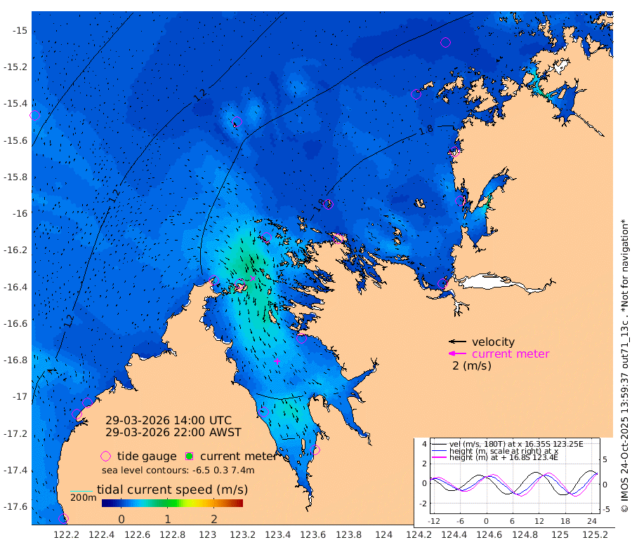 115cm Cape Baskerville 135cm Red Bluff 125cm Cape Boileau 174cm Karrakatta Bay 166cm Sunday Island 138cm Valentine Island 104cm Derby 144cm Port Usborne 186cm Bedford Islands 196cm Yampi Sound (Koolan Island) 246cm Macleay Island 154cm Adele Island 233cm Shale Island 206cm Lizard Island 122cm Hall Point 175cm Degerando Island 140cm White Island 87cm Lynher Bank