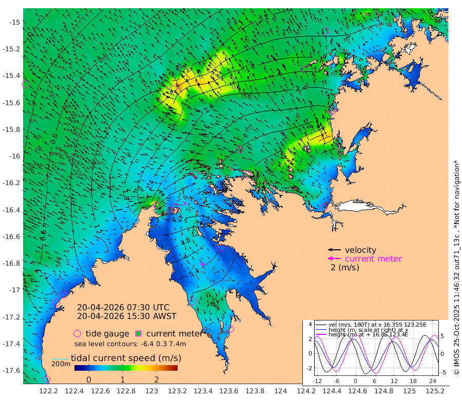 -51cm Cape Baskerville 20cm Red Bluff -42cm Cape Boileau 212cm Karrakatta Bay 227cm Sunday Island 532cm Valentine Island 567cm Derby 468cm Port Usborne 135cm Bedford Islands 152cm Yampi Sound (Koolan Island) 138cm Macleay Island 30cm Adele Island 268cm Shale Island 263cm Lizard Island 170cm Hall Point 64cm Degerando Island 17cm White Island -21cm Lynher Bank