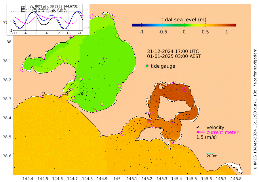 80cm San Remo 80cm Elizabeth Island 99cm Bouchier Channel 97cm Tooradin 75cm Cowes Jetty 79cm Western Port (Stony Point) 97cm Western Port (Sandy Point) 51cm Flinders Jetty 19cm Mornington 22cm Sandringham 19cm Rosebud Jetty 20cm Hovell Pile 24cm South Channel 36cm Point Lonsdale 25cm Queenscliff 21cm West Channel Pile 40cm Barwon Heads 21cm St Leonards 24cm Point Richards (Corio Bay) 23cm Point Richards Channel 24cm Geelong 18cm Werribee 23cm Altona 24cm Wilson Spit 21cm Melbourne (Williamstown) 22cm St Kilda