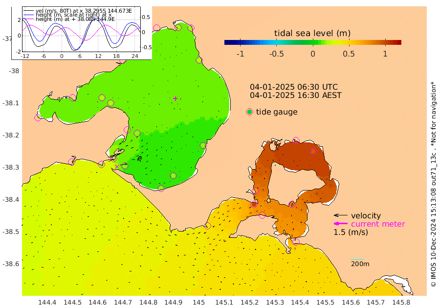77cm San Remo 80cm Elizabeth Island 94cm Bouchier Channel 94cm Tooradin 65cm Cowes Jetty 72cm Western Port (Stony Point) 98cm Western Port (Sandy Point) 34cm Flinders Jetty 16cm Mornington 19cm Sandringham 17cm Rosebud Jetty 17cm Hovell Pile 17cm South Channel 18cm Point Lonsdale 16cm Queenscliff 18cm West Channel Pile 18cm Barwon Heads 18cm St Leonards 21cm Point Richards (Corio Bay) 20cm Point Richards Channel 22cm Geelong 16cm Werribee 20cm Altona 20cm Wilson Spit 20cm Melbourne (Williamstown) 21cm St Kilda