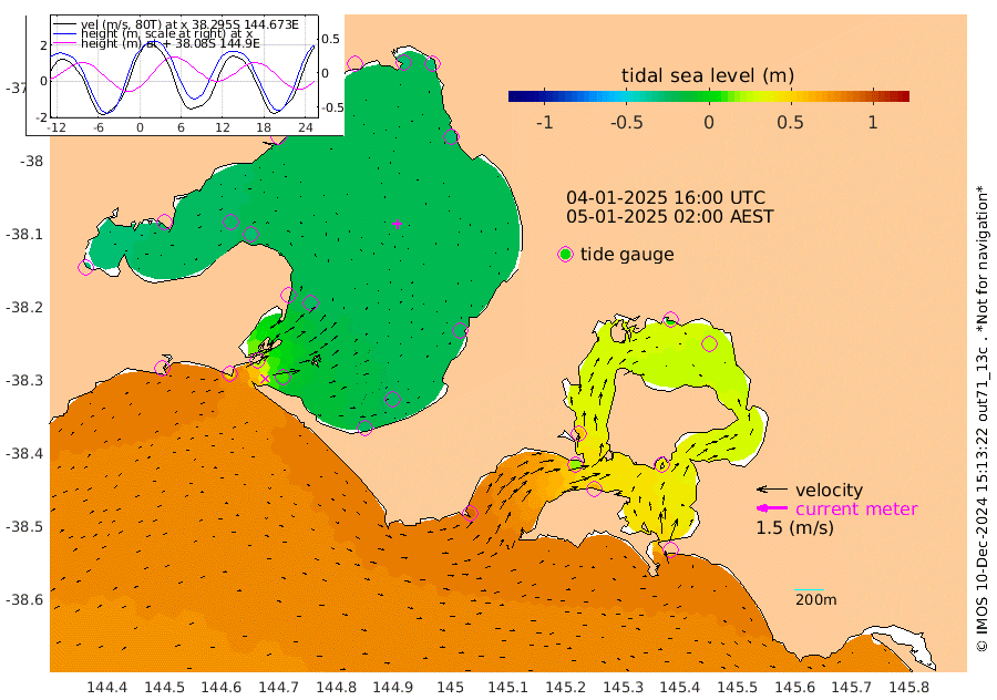 59cm San Remo 41cm Elizabeth Island 23cm Bouchier Channel 7cm Tooradin 63cm Cowes Jetty 57cm Western Port (Stony Point) 18cm Western Port (Sandy Point) 89cm Flinders Jetty -24cm Mornington -28cm Sandringham -24cm Rosebud Jetty -23cm Hovell Pile 8cm South Channel 51cm Point Lonsdale 20cm Queenscliff -23cm West Channel Pile 77cm Barwon Heads -21cm St Leonards -27cm Point Richards (Corio Bay) -24cm Point Richards Channel -31cm Geelong -25cm Werribee -26cm Altona -26cm Wilson Spit -27cm Melbourne (Williamstown) -26cm St Kilda
