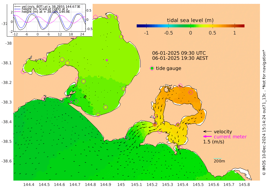 42cm San Remo 53cm Elizabeth Island 75cm Bouchier Channel 85cm Tooradin 29cm Cowes Jetty 38cm Western Port (Stony Point) 83cm Western Port (Sandy Point) -11cm Flinders Jetty 21cm Mornington 25cm Sandringham 21cm Rosebud Jetty 21cm Hovell Pile 8cm South Channel -10cm Point Lonsdale 1cm Queenscliff 22cm West Channel Pile -19cm Barwon Heads 22cm St Leonards 27cm Point Richards (Corio Bay) 25cm Point Richards Channel 30cm Geelong 21cm Werribee 25cm Altona 27cm Wilson Spit 26cm Melbourne (Williamstown) 26cm St Kilda