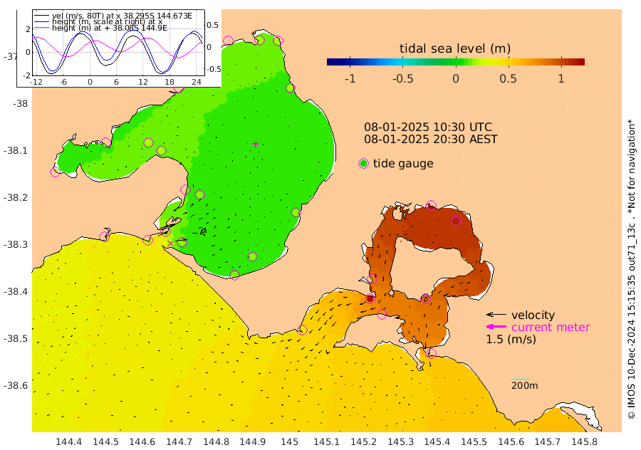 86cm San Remo 93cm Elizabeth Island 111cm Bouchier Channel 114cm Tooradin 74cm Cowes Jetty 80cm Western Port (Stony Point) 116cm Western Port (Sandy Point) 39cm Flinders Jetty 17cm Mornington 21cm Sandringham 17cm Rosebud Jetty 17cm Hovell Pile 17cm South Channel 19cm Point Lonsdale 16cm Queenscliff 18cm West Channel Pile 18cm Barwon Heads 19cm St Leonards 22cm Point Richards (Corio Bay) 21cm Point Richards Channel 24cm Geelong 15cm Werribee 21cm Altona 22cm Wilson Spit 21cm Melbourne (Williamstown) 21cm St Kilda